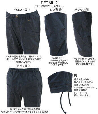 ウエスト内側、裾にドローコード付き。