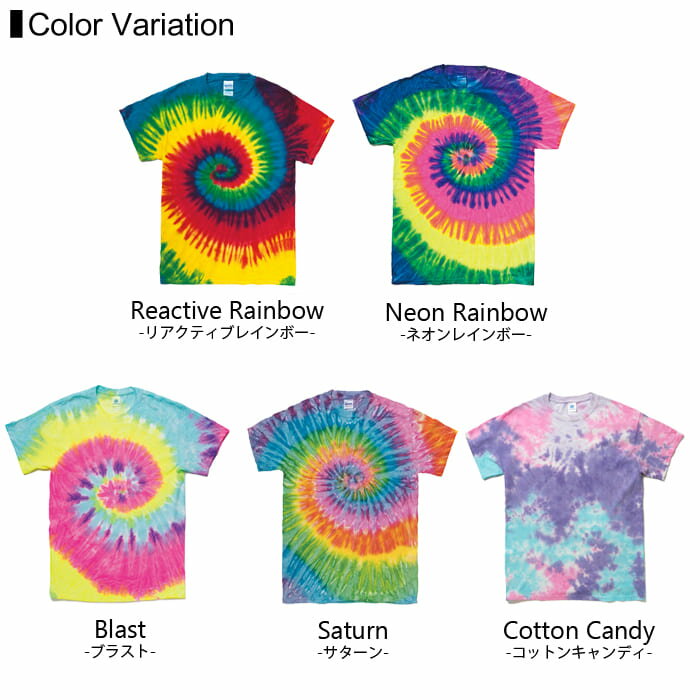 商品名 The Colortone カラートーン TD10005.3 oz レインボー&マルチカラーTシャツ 素材 綿100% サイズ サイズ 着丈 身幅 裄丈 S 67 44 40 M 69 49 44 L 72 54 48 XL 74 59 52 原産国 Tie-Dyed in USA 特徴 鮮やかなスパイラルが魅力のタイダイTシャツ。