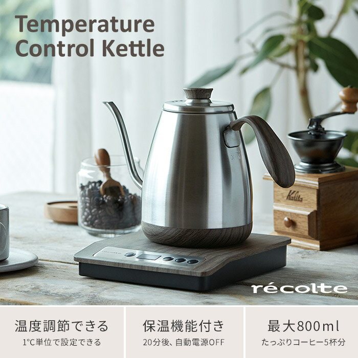 電気ケトル recolte レコルト 温度調節ドリップケトル RTK-1 湯沸かしポット電気ポット 温度調節 沸騰 コーヒーケトル やかん ポット 電気 結婚祝い カフェ ハイパワー インスタント ドリップ 木目 ステンレス おしゃれ かわいい シンプル ギフト プレゼント